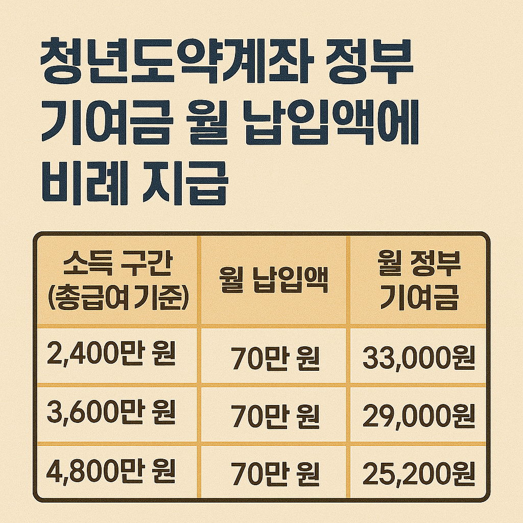 - 정부 기여금: 소득 구간별로 월 최대 3만 3천 원 지급