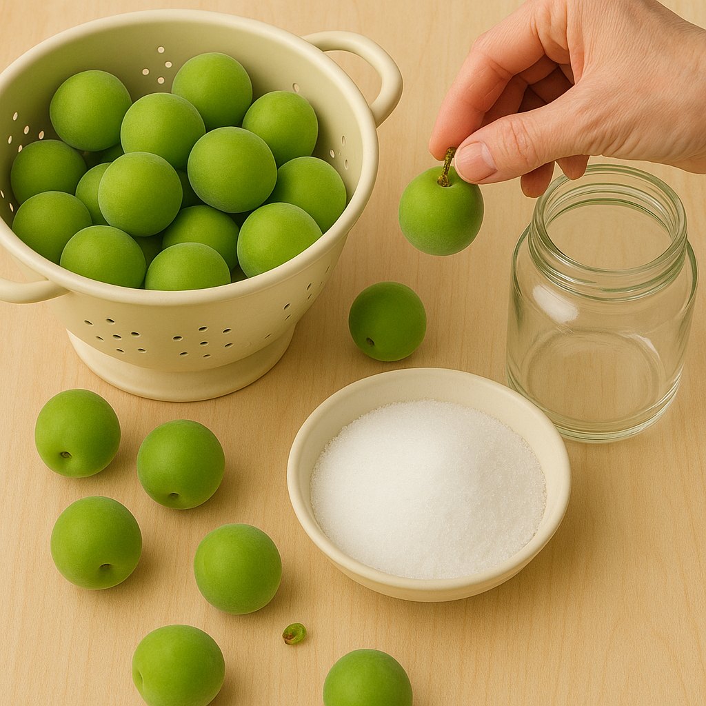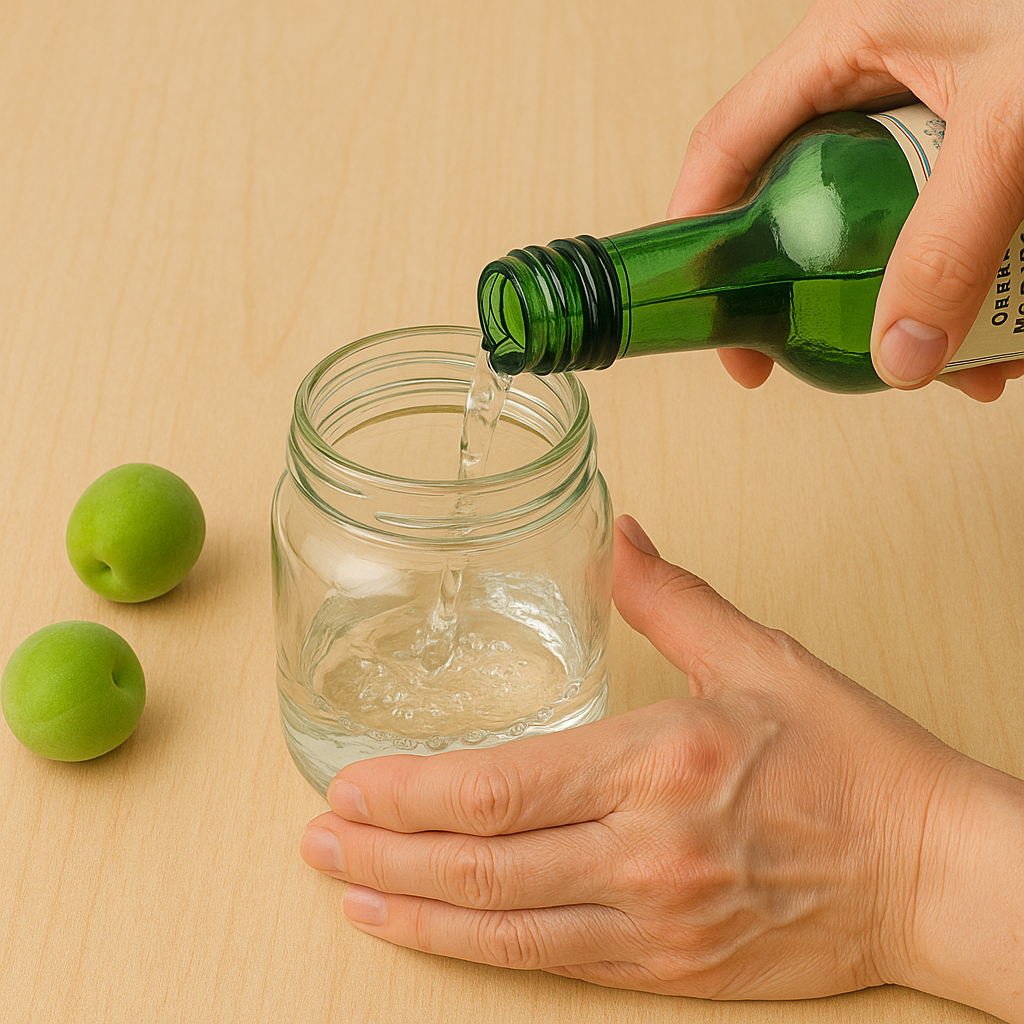 - 매실 세척: 흐르는 물로 여러 번 헹군 뒤 꼭지를 제거하고 물기를 말끔히 제거합니다.