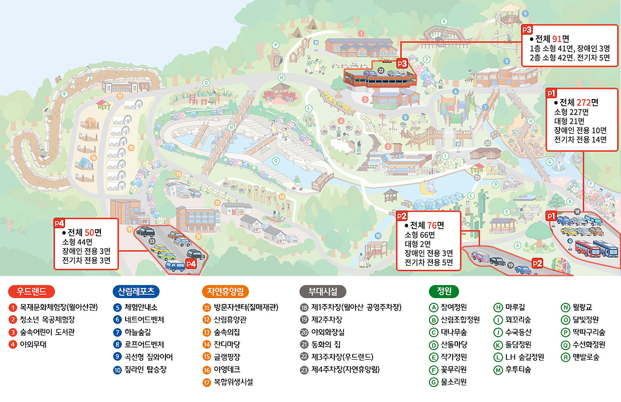 - 소형버스(25인승, 7m급) 및 중형버스(35인승, 9m급)는 목재문화체험장 옆에서 승객 하차 후, 제1 또는 제2주차장에 주차 가능합니다.