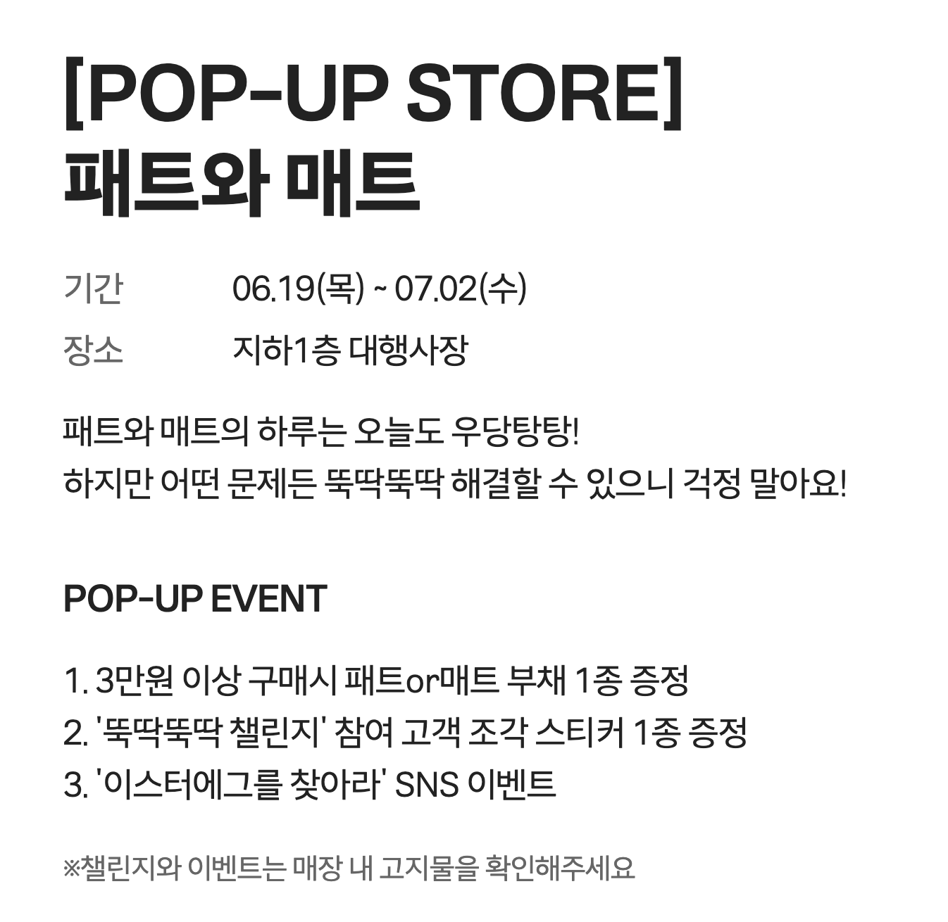 ✔️ 예약은 카카오톡에서 ‘패트와 매트 팝업’ 검색