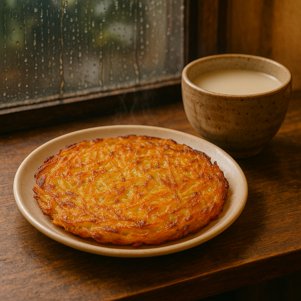 이처럼 감자채전 만드는 방법은 아주 간단하지만, 구울 때 기름 온도와 눌러 굽는 압력이 맛의 차이를 만들어냅니다.