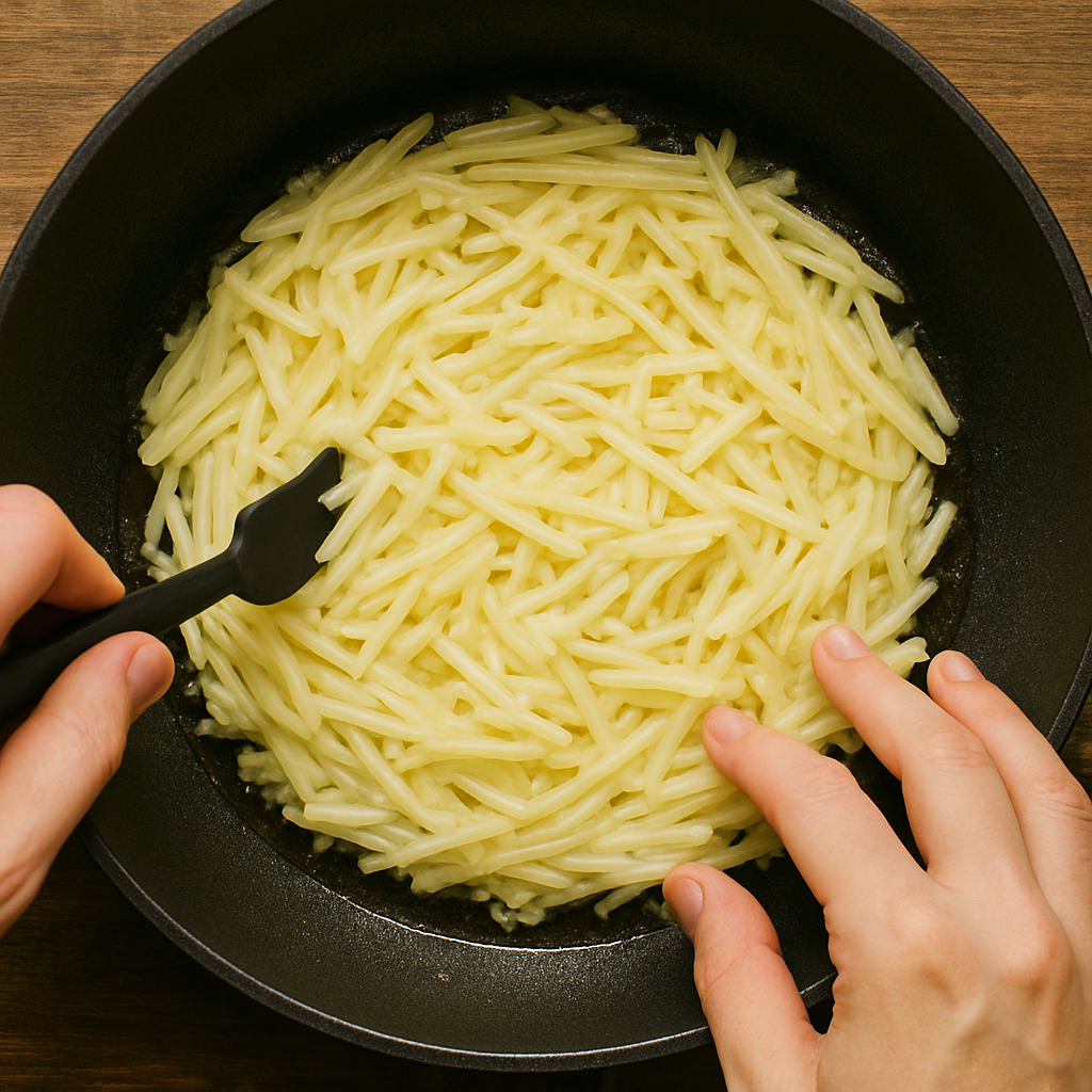 감자채전은 밀가루 없이도 충분히 만들 수 있어요. 감자채전 만드는 방법 중 가장 중요한 단계는 감자의 전분만으로 고소함을 살리는 것이죠.