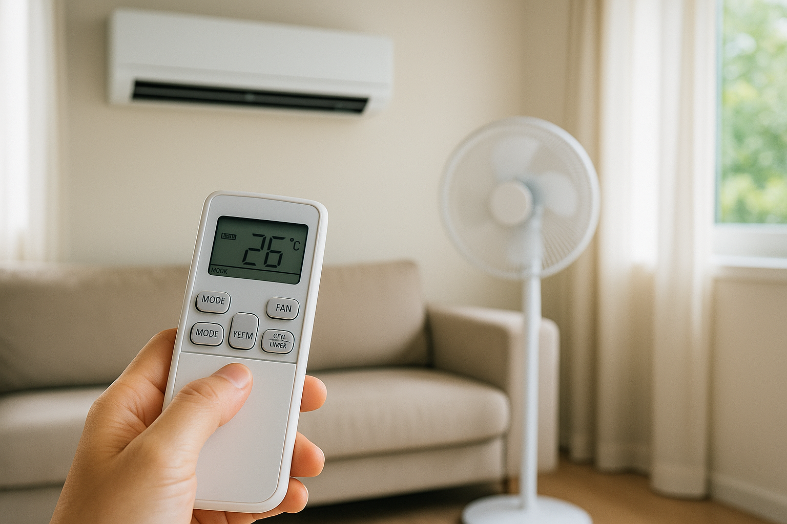 에어컨 온도를 1도 낮출 때마다 전력 사용량은 약 6~8% 증가합니다. 선풍기와 함께 사용하면 체감온도는 내려가면서 에어컨 사용 시간을 줄일 수 있습니다. - 절전 모드와 타이머 기능 적극 활용하기