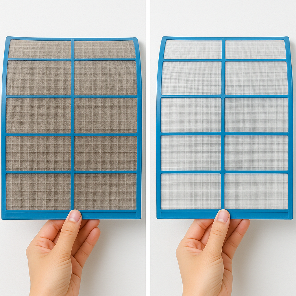 작은 틈으로 빠져나가는 냉기만 막아도 전력 소모를 크게 줄일 수 있습니다. - 에어컨 필터는 2주에 한 번 청소하기